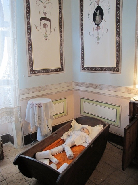 2. What a lip-smackingly fabulous post. I love the corn curtain and I find domestic history museums fascinating. The bridal outfit is so simple and beautiful although it made me think of Miss Haversham. There is something very poignant about the silent instruments on the wall and the picture of the men who played them, but I did rather wonder what had caught the eyes of the priests! I notice the ‘baby’ in the cradle has its legs bound? The Garfagnana must be a very beautiful area; I so enjoy the details your eye and camera capture.