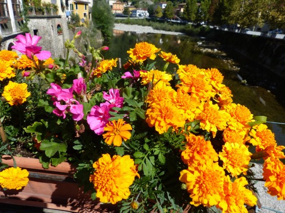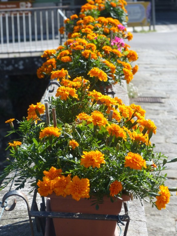 I planted geraniums and a bit later, marigolds, in late spring. The geraniums have not done well, but the marigolds have thrived. A few have recently dropped dead, but new seedlings are growing to replace them. They put on a very good show and there will be marigolds on the bridge next year.
