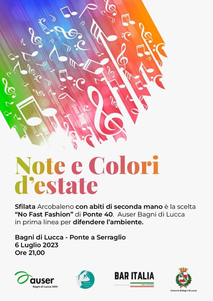 A colourful night of colour and fashion, by Auser Bagni di Lucca, will be held in the piazza in Ponte a Serraglio on Thursday 6th July at 9.00pm. The road will be closed for the event.