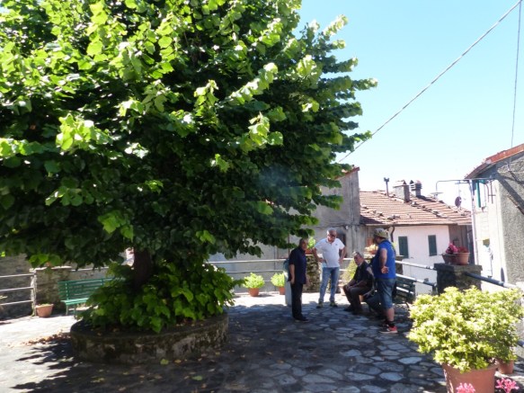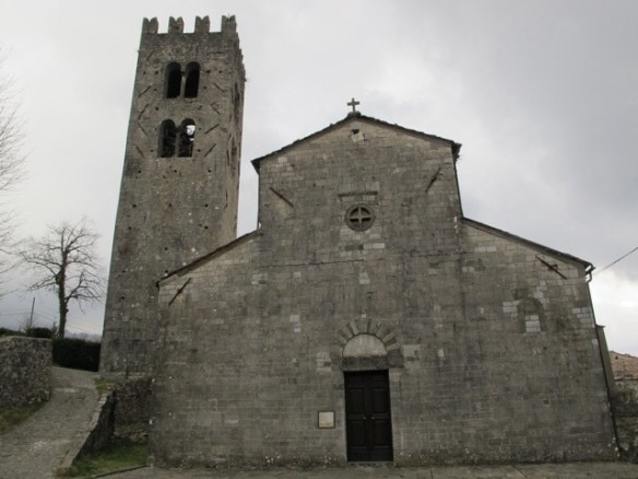 I joined the first walk of the season in Bagni di Lucca in Vico Pancellorum. A small group, together with our guides, gathered and began our walk at the base of the village near the church. It is covered in scaffolding now…here is a photo I took on an earlier visit in winter.