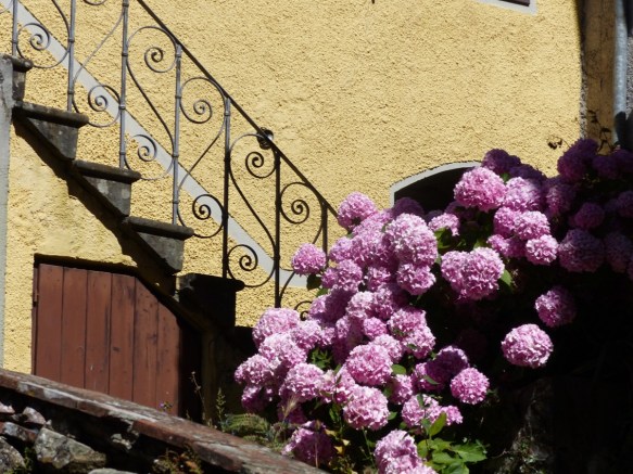 We walked down to the bottom of the village on the shady road. We stopped occasionally to pick tiny wild strawberries. I can report that they are delicious.