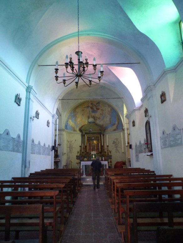 Near here is the tiny Chiesina del SS Crocifisso. The tinted windows cast interesting colours inside the church.