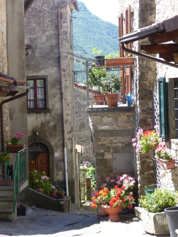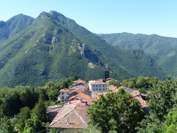 Views across to other Bagni di Lucca villages pop up between houses.