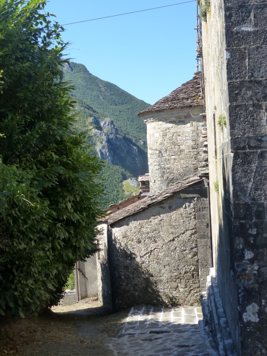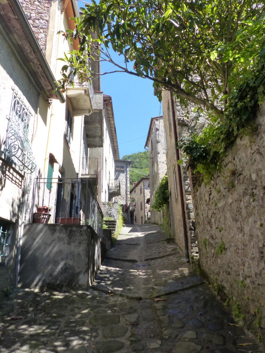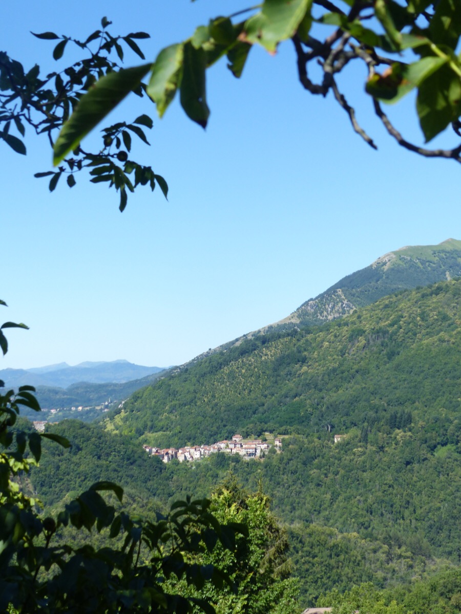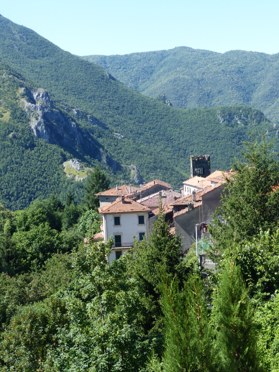 Views across to other Bagni di Lucca villages pop up between houses.