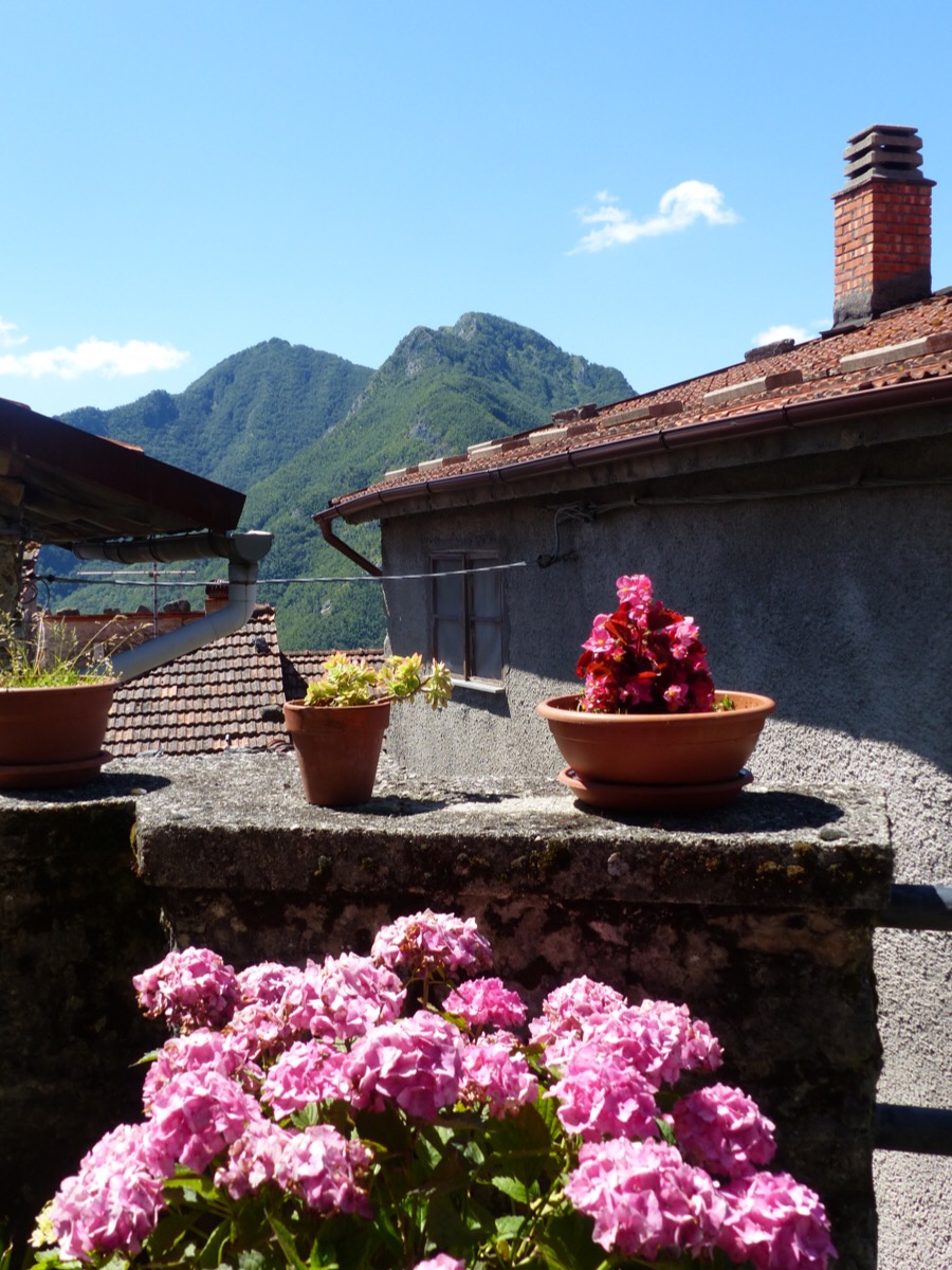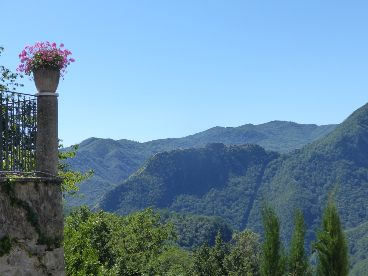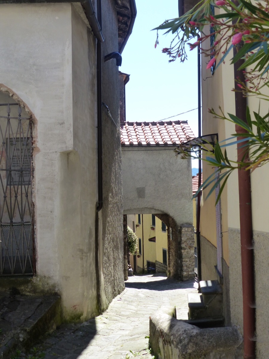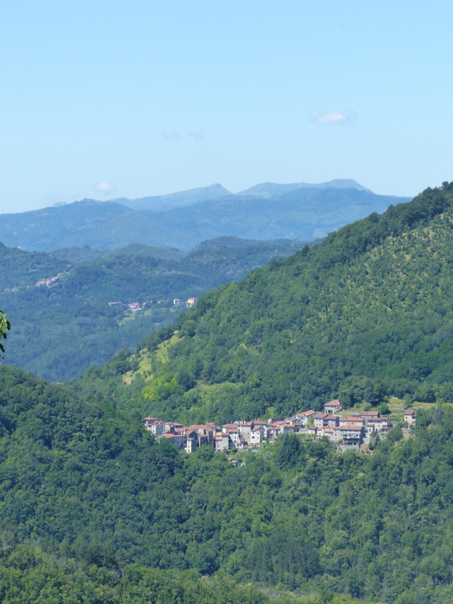 Views across to other Bagni di Lucca villages pop up between houses.