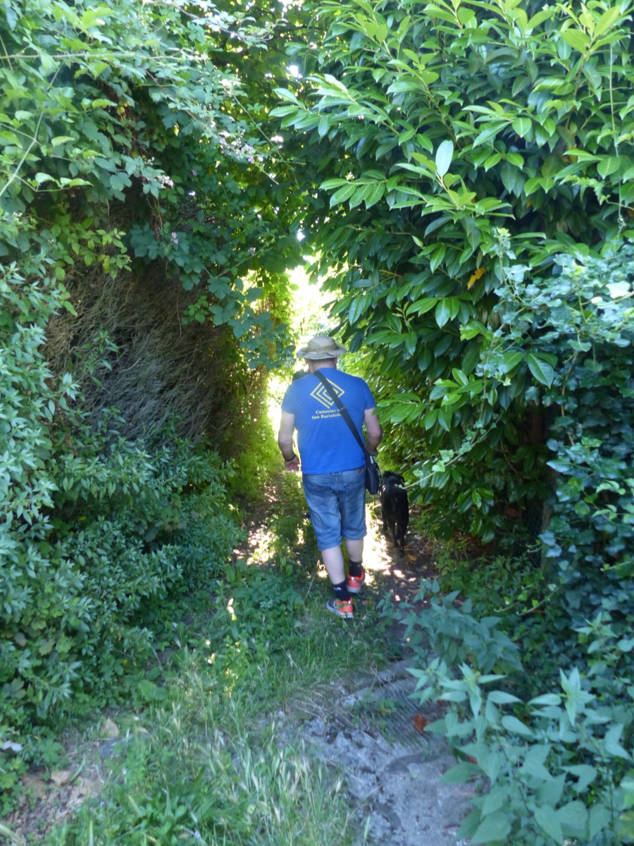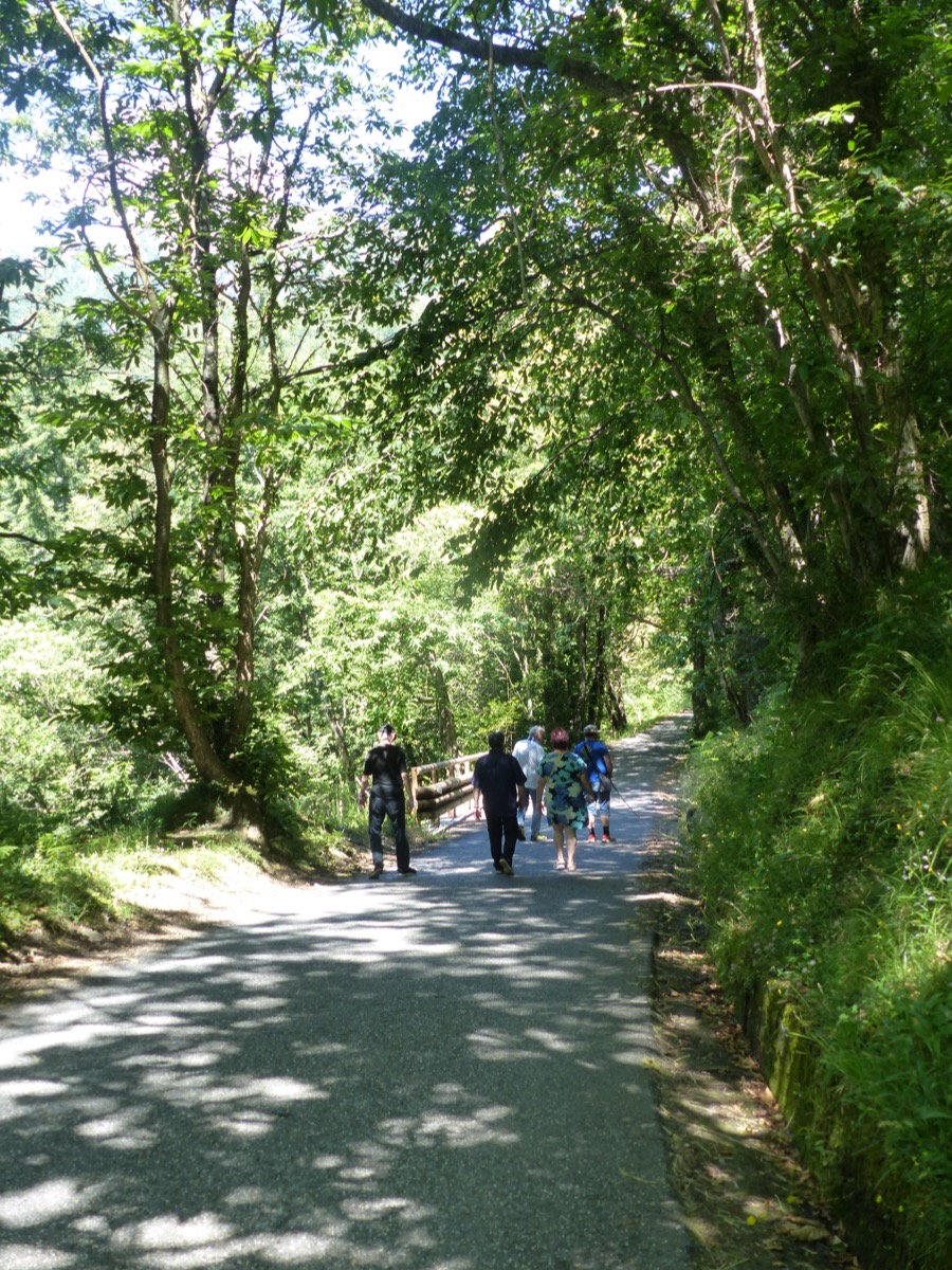 We walked down to the bottom of the village on the shady road. We stopped occasionally to pick tiny wild strawberries. I can report that they are delicious.