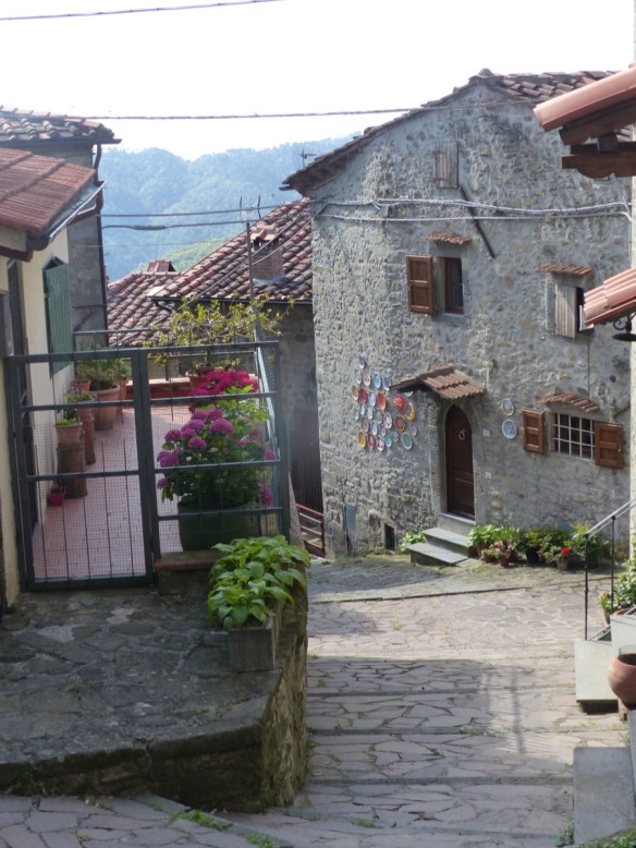 Boveglio is delightful. The gardens are beautifully cared for. Most houses are built of grey stone, so it could quite drab without the riot if colour provided by the lovely flowers. Thank you to the green fingered gardeners who made this walk through the village so joyful.