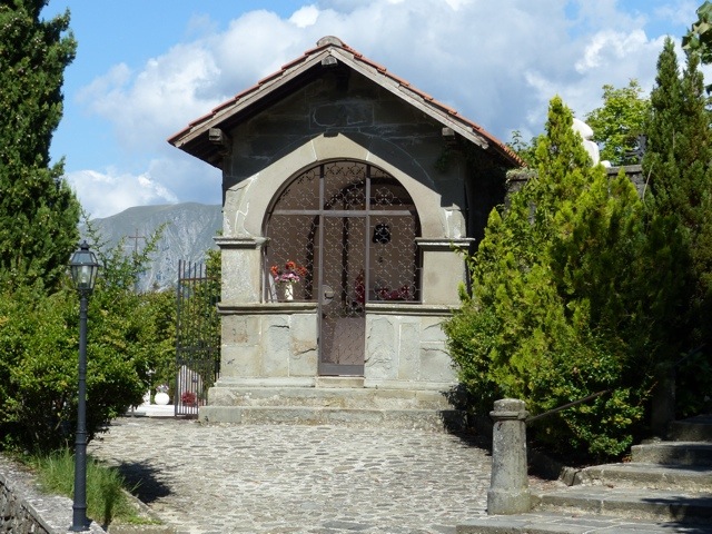 In front of the altar in a glass case is Saint Primo surrounded by embroidered flowers. Poor little Primo was 4 years old when he was murdered. Every 5 years on the second Sunday of August Casabasciana celebrates the life of Primo when the village lights up and has an evening of fireworks.