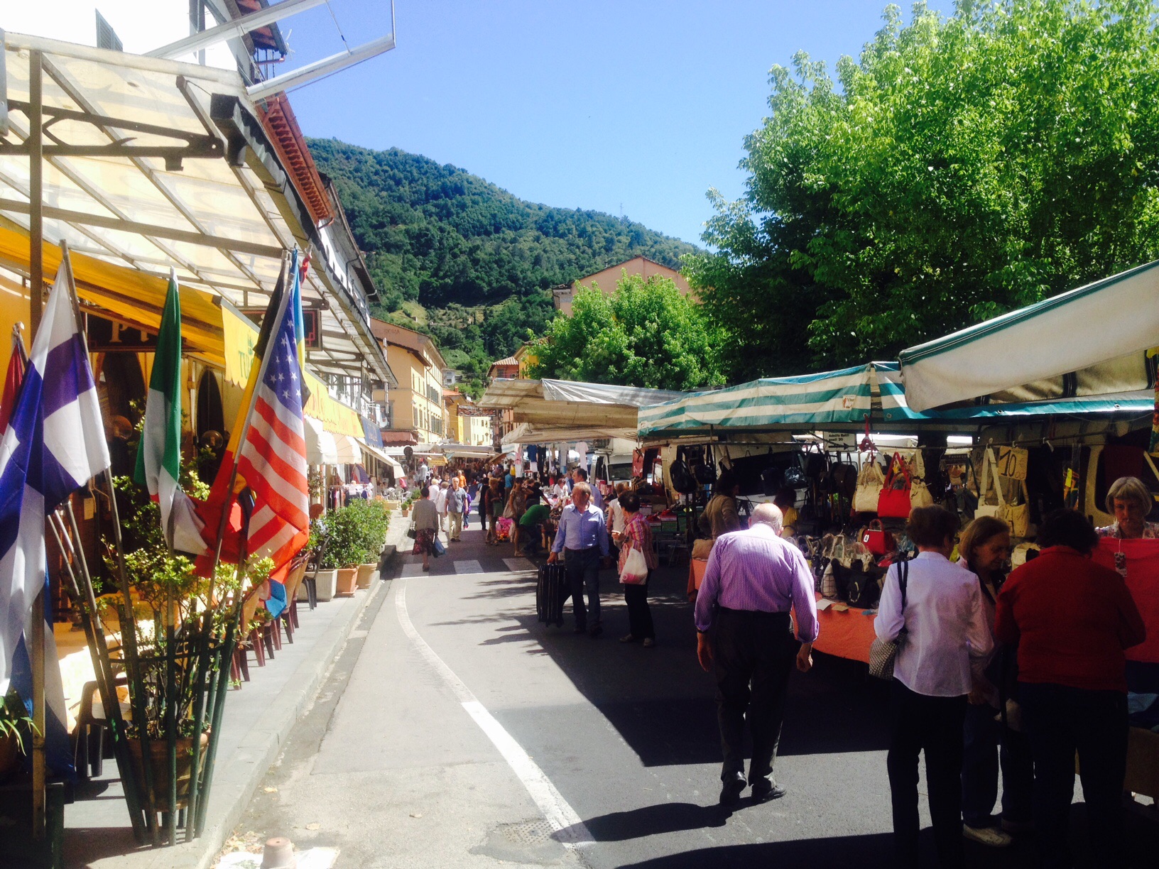The lovely Tiglio trees provide a canopy for the street market in Fornoli today.