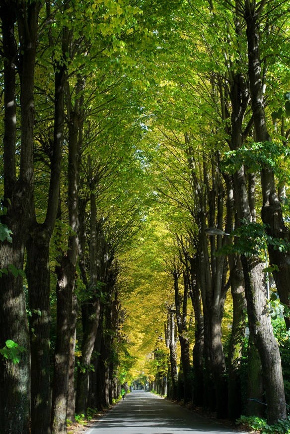 A peaceful tree lined road takes you up the mountain.