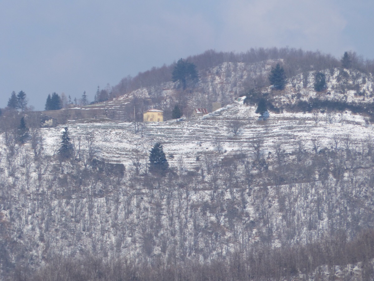 Montefegatesi looks wonderful whatever the weather. Here it is with its winter coat.