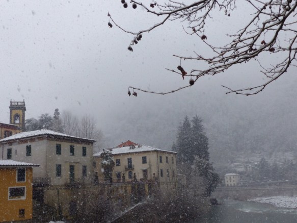 “The Beast from the East” is certainly making its presence felt in Bagni di Lucca. It was below zero on my balcony at Ponte a Serraglio this morning.
